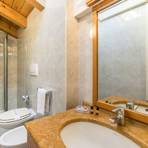 Beide Badezimmer verfügen über Dusche, Toilette, Bidet und Haartrockner.