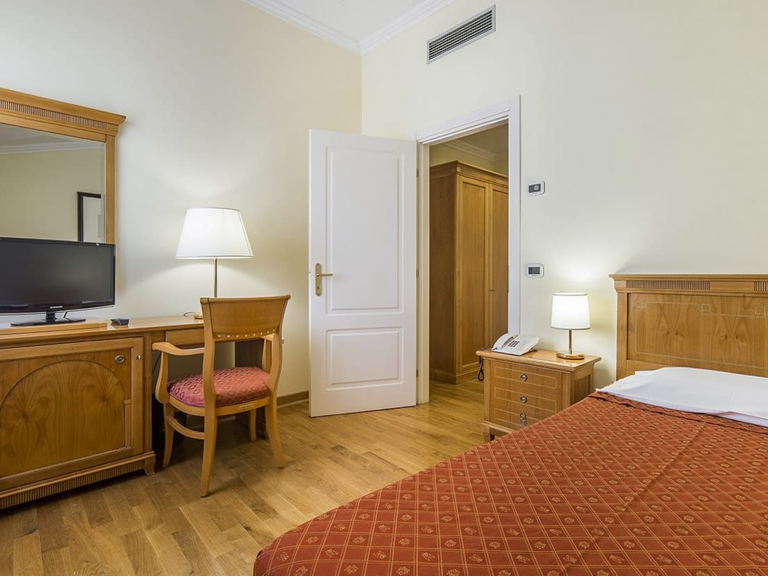 Das 4 Stern Hotel Ville Bianchi in Grado verfügt über geräumige, elegante Queen-size Bett Zimmer, die Platz bieten für 2 bis 3 Personen. Mit allem Komfort ausgestattet, auf Wunsch auch mit Balkon und Meerblick.