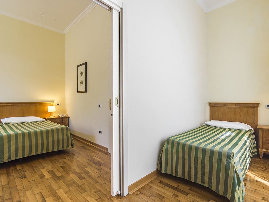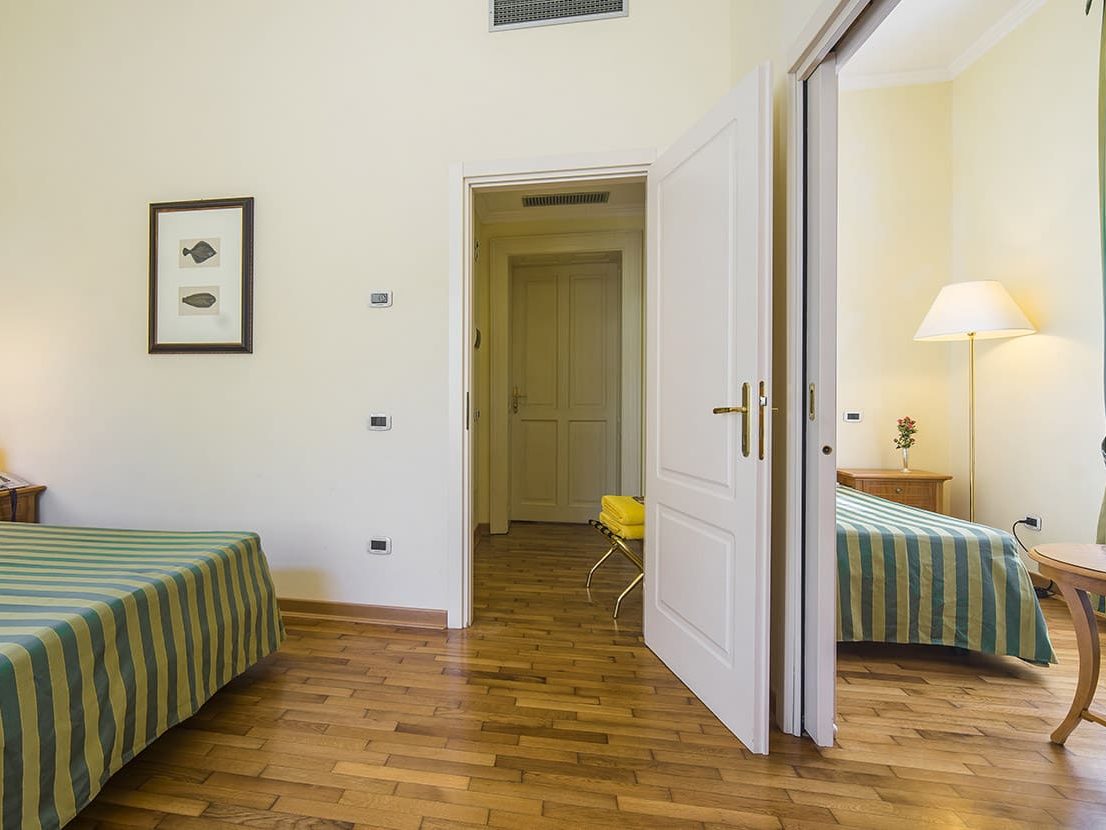Die Familienzimmer des Hotel Ville Bianchi in Grado, bestehen aus einem Eingangsbereich, Queen-size Bett Zimmer, Einzelzimmer und Bad, eingerichtet in unserem unverwechselbaren Stil, geeignet für 3 oder 4 Personen.